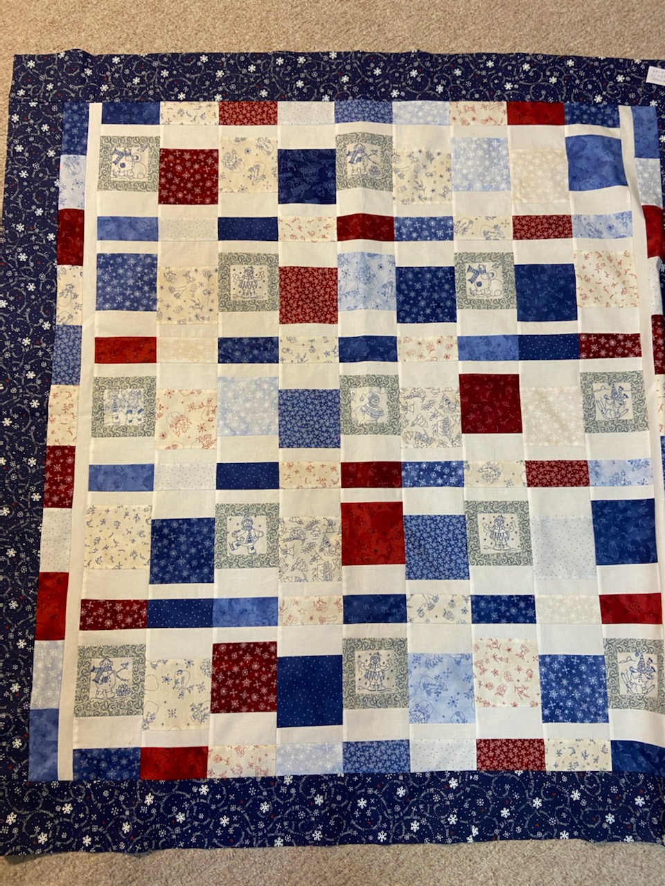 | This quilt was put together from embroidered blocks from a beloved Hope Quilter who passed away. We loved you so much Georgia, and we miss you. It will be donated to her family. |